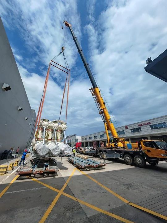据悉,该批货物为本地制造企业出口的组合电器,单件尺寸达5.76*3.06*3.81m,单件装载重量高达约13吨,总重77.4吨,属于超大件异形货物,保障难度较大。