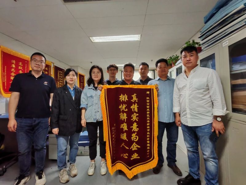 4月26日,西安悦达悦睿置业有限公司将印有“真情实意为企业,排忧解难暖人心”“严格监督为企为民,真诚服务悦建悦美”的锦旗送到开发建设部,对开发建设部在悦达玖玺台项目周边环境提升改造、推进项目竣工验收等方面给予的帮助和支持表示感谢。