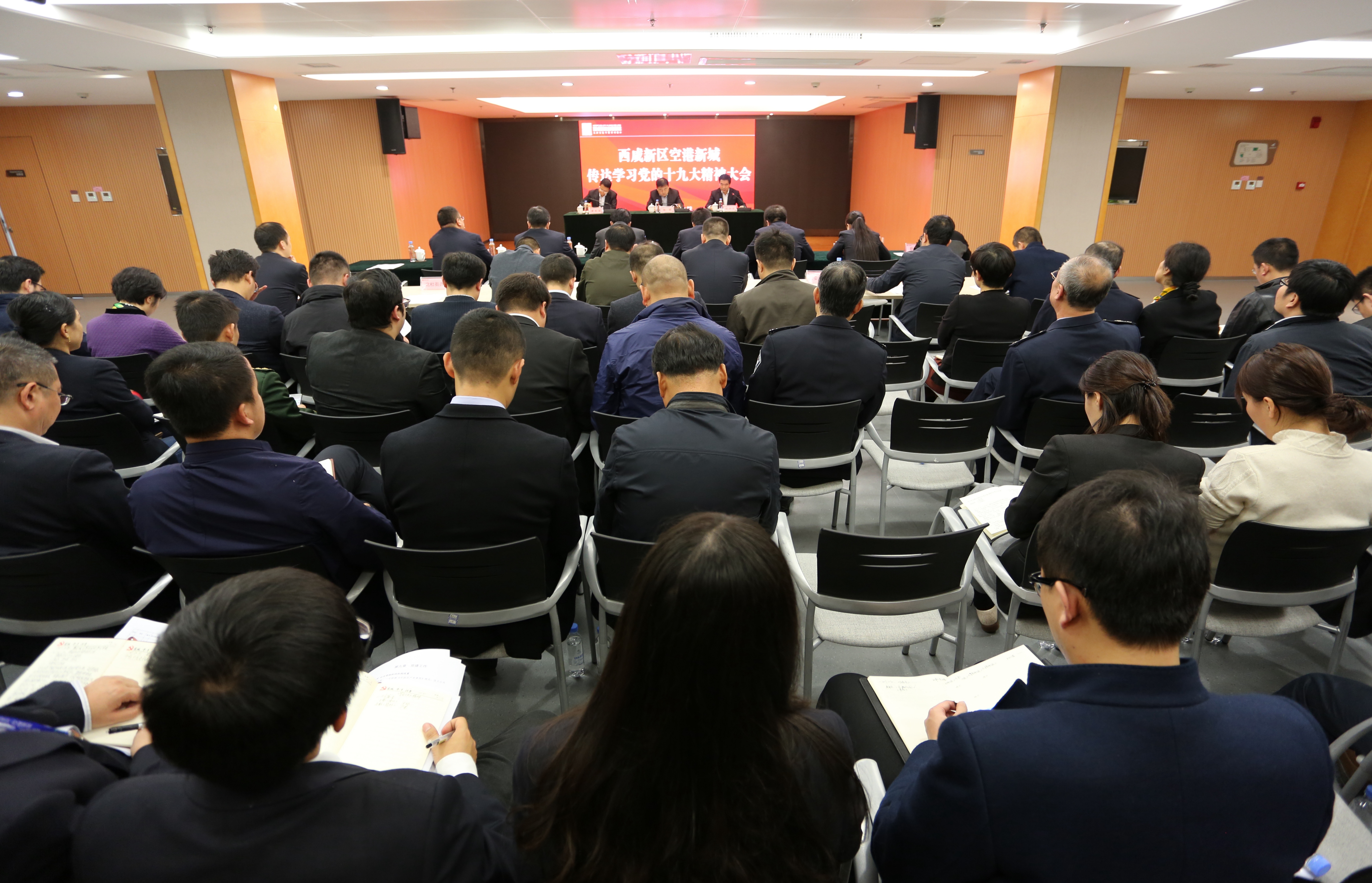 会议就学习宣传贯彻党的十九大精神工作进行了安排部署。学习宣传贯彻党的十九大精神,就是要把思想和行动统一到党的十九大精神上来,要迅速形成学习宣传贯彻党的十九大精神的热潮,充分认识党的十九大召开的历史意义,准确把握党的十九大精神的核心要义,结合实际工作学以致用,以十九大精神指导空港新城各项工作。