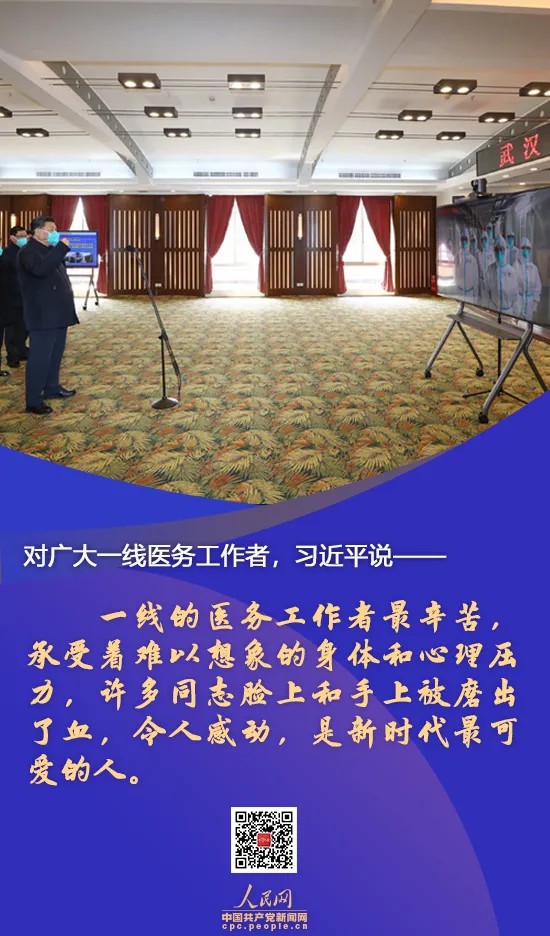 ● 广大医务工作者坚韧不拔、顽强拼搏、无私奉献,展现了医者仁心的崇高精神,展现了新时代医务工作者的良好形象,感动了中国,感动了世界。