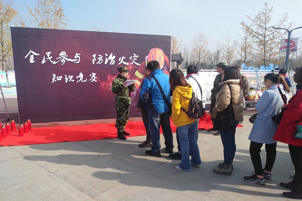 空港新城消防大队在昆明池设置宣传台,在宣传活动中,宣传人员通过摆放消防器材、消防展板设立咨询台、知识问答等形式向群众普及消防知识,并向广大过往群众发放《消防安全常识二十条》及《家庭防火知识》《火灾逃生知识》等宣传资料,宣传人员同时用通俗易懂的语言为群众解答消防疑难问题,教育广大群众切实增强防范意识,掌握防火、灭火和逃生自救等各类常识。活动现场还设置了烟雾逃生体验区,宣传人员引导群众进入烟雾体验模拟逃生,在消防器材展示区,中队消防员为大家讲解了灭火器等常用消防器材装备的性能和使用方法,使大家全方位了解和关注消防安全知识。活动期间,宣传人员还向过往群众发放了消防车、钥匙扣等小礼品。