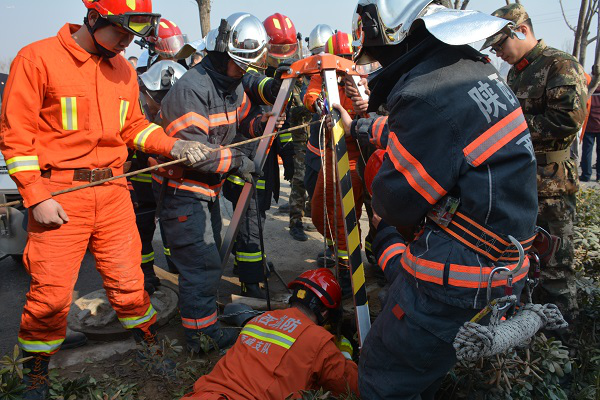 2018年2月6日09时20分,空港新城中队接指挥中心派警称,空港新城兴教大街路口污水井内两人被困。空港新城中队迅速出动一辆抢险救援车,一辆城市主站车共计12名指战员赶往现场。