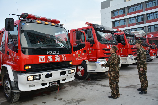 为配合好总队进行全省消防部队装备器材日常管理,全面保障中队各车及器材完整好用,11月30日下午,总队装备运输处助理薛坤一行在支队后勤处助理员党彤的陪同下莅临空港新城中队进行车辆装备巡检。