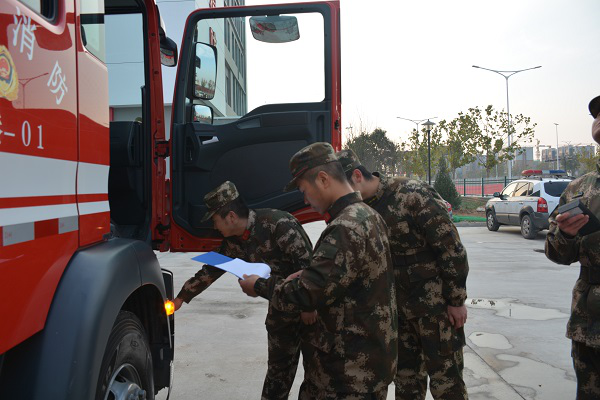 检查组一行到队后,首先对所有车辆的方位灯、卫生情况、器材保养得情况进行了仔细的检查。检查过程中,对各车的司机进行了提问与考核。重点是检查各车的油气水电是否充足,检查各车司机对车辆性能参数的熟悉与理解。检查过后,在中队全体官兵的配合下,对中队所属车辆的发动机编号与车辆数据进行了登记。然后,对中队的执勤器材数、库存器材数、业务平台数据进行核查与记录,指出了其中的问题与错误并整改方向与方法。最后,组织官兵对中队的特种器材进行了实地演练,演练的重点是操作与“五知一能”讲解。