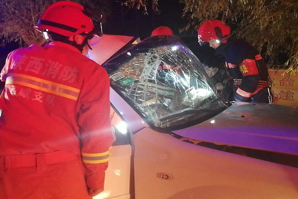 23时00分,空港新村中队到达事故现场,经现场侦查确认,事故为小车驾驶速度过快,撞在路旁柳树上,发生侧翻。指挥员立即下达作战命令:警戒组负责警戒,抢险救援组立即将车辆牵引水平,进行破拆操作。经过二十分钟的紧张战斗,人员被成功救出并移交120后,指挥员命令打开引擎盖对发动机进行进一步的处理,再确认无燃烧爆炸可能后。23时25分,将现场移交给交警,中队官兵收整器材返回。