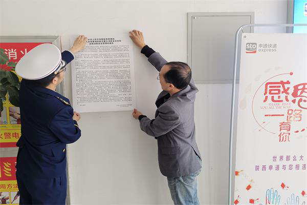 空港大队根据通知要求,印制了200份《通告》,大队监督员、文员以及卫星消防站消防员深入辖区宾馆、酒店、超市、商场、医院、学校等场所张贴了《人员密集场所防范重大消防安全风险加强消防安全管理的通告》,同时,大队工作人员以宣贯《通告》为契机,针对当前火灾特点,着力普及防火灭火、安全疏散和自救逃生知识,宣传典型火灾案例,加强警示教育,提高公众消防安全意识。