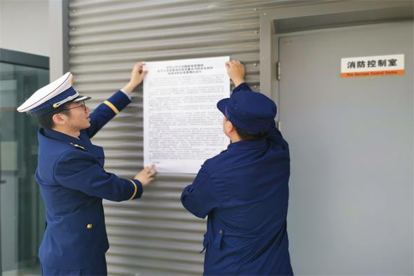 为有效防范化解重大消防安全风险,落实国务院安委会办公室部署开展的“防风险保平安迎大庆”消防安全执法检查专项行动,督促人员密集场所落实消防安全主体责任,预防和遏制群死群伤火灾事故,空港大队在辖区广泛张贴《人员密集场所防范重大消防安全风险加强消防安全管理的通告》。