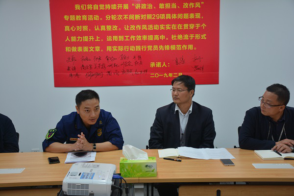 会议中,陈家庆大队长向市政消防栓建设部门详细分析了当前消火栓建设现状及存在问题,辖区内部分消火栓均存在掩埋、井壁格挡、无水、漏水、损坏等现象,不能满足日常出警灭火救援的需要。并对就相关的整改细节进行了研讨。会议就辖区消火栓建设整改工作提出几点希望:一是希望相关部门能积极配合,对消防工作给予充分的支持;二是希望此次消火栓建设整改工作能拿出详细的整改方案并指定专人负责;三是希望相关部门能够尽快完成整改工作并摸清消火栓建设底数进行报备,将消火栓统一纳入“智慧城市”管理模块。