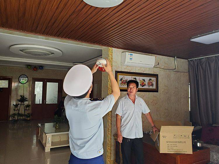 为切实提高辖区九小场所消防安全意识和自防自救能力,确保辖区夏季火灾防控形势稳定,6月12日,空港新城消防大队深入辖区边方村,联合村委会为小旅馆场所发放独立式火灾探测器并指导相关人员完成探测器安装。