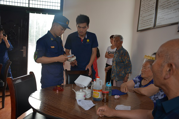 在以往排查辖区火灾隐患时,空港新城大队了解到老年日间看护场所普遍存在管理人员少、老人大多失去自主行动能力、缺乏防火设施等隐患。之后,大队迅速组织人员对辖区孙家村老年日间看护场所进行关怀慰问,并进行独立式烟感报警器安装推广工作。在安装开始前,大队人员与老人们进行亲切交谈,一边向老人普及火灾知识,一边对烟感报警器原理进行讲解。讲解完毕后,大队人员在老人住宿、娱乐、就餐等场所安装了感烟报警器。