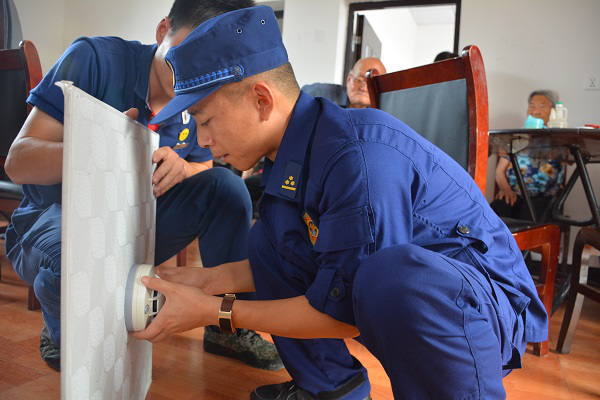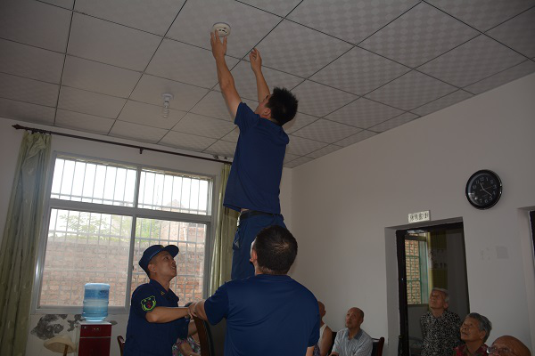 为做好帮扶共建工作,提高低行动能力人群火灾预防水平,6月13日,空港新城大队组织指战员为辖区老年日间看护场所安装独立式烟感报警器。