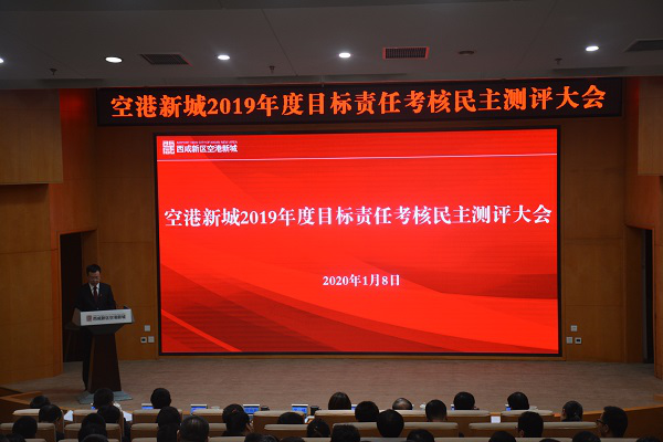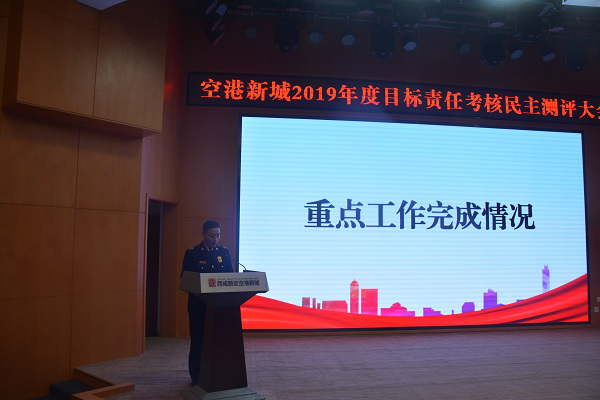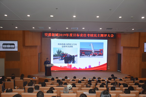 1月8日,空港新城召开2019年度目标责任考核民主测评大会。会议主要由管委会班子成员和管委会各部门、各服务支撑机构中层干部及员工代表参加,空港新城消防大队大队长陈家庆代表大队参加会议并作述职报告。