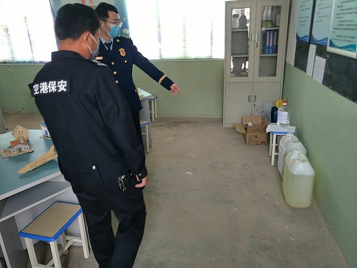 随后,空港消防大队参谋彭程带领队员对校园的安全隐患进行了检查。并在隐患排查联合会上对两学校的安全隐患进行了总结发言,指出了三个安全隐患并提出改进意见。一是对防疫消毒物品的存储、保管、使用提出注意事项及改进意见,二是提出电线电缆的布置存在的安全隐患,三是检查发现灭火器具配置较少等情况进行了反映。