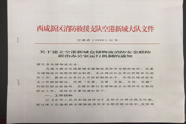 为建立健全仓储物流消防安全联防组织,完善仓储物流区域联防联治制度,充分调动社会单位积极参与消防工作,提高社会单位火灾防控制体水平,实现“互查、互管、互监、互改、互救”的联防联治新格局。6月24日,空港大队联合辖区多家仓储物流企业成立了仓储物流消防安全联防联治办公室,并组织召开了第一次集体会议。