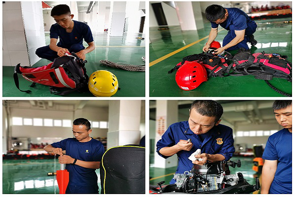 四、强化措施,狠抓落实。救援站每日针对水域救援、抗洪防汛车辆装备开展专项检查。全体指战员逐一对手抬机动泵、浮艇泵、救生衣、照明工具、水面漂浮绳以及救生抛投器等防汛应急救援器材装备进行了细致地检查与保养,重点对舷外机火花塞、油路:油料进行了查看,并对个人激流背心上的快脱装置、牛尾绳、 高音哨、抛绳包进行了检查维护。对泵浦车辆的泵吸水功能、所属附件、油水电气等情况展开全面检查。救援站干部要求全体指战员要切实提高思想认识,增强工作责任感、紧迫感,严格落实执行一系列安全行动要则,时刻保持高度的安全防范意识,积极做好抗洪抢险救援准备工作。