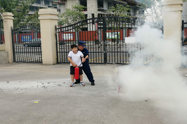 开展消防器材展示,展现消防队伍风采。为让在校师生更进一步了解消防,消防员在学校操场现场展示了各类消防装备器材讲解了每种器材的特点和用途。当看到消防员运用精湛的技术熟练的操作每一件消防器材时,学生们跃跃欲试,在消防员的指导下,学生们还进行了现场用灭火器扑救初起火灾,让他们真正“零距离”感受了消防。