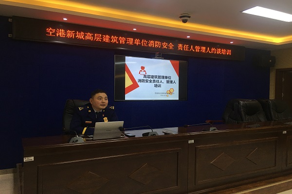 为扎实推进消防安全专项整治三年行动工作,强化社会单位认真落实消防安全主体责任,全面提升高层住宅小区建筑火灾防控能力,10月21日下午,空港消防救援大队组织召开了辖区高层住宅建筑小区物业集体约谈、培训会,新城多家小区物业消防安全责任人、管理人参加了此次会议,会议由空港大队防火监督干部张鲁同志主持。