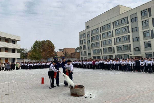 在急促的消防铃声响起之时,全体师生迅速且有序的下楼集合,整个过程严格按照逃生指导进行。演练现场,我站队员从如何报火警、火灾预防、火场自救及逃生方法等消防安全基本常识进行了认真讲解。随后,进行了现场演示灭火器的操作程序,让师生们亲身体验灭火器的使用,使大家正确掌握灭火器的方法,遇到火灾临危不乱,安全逃生。