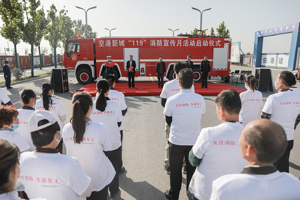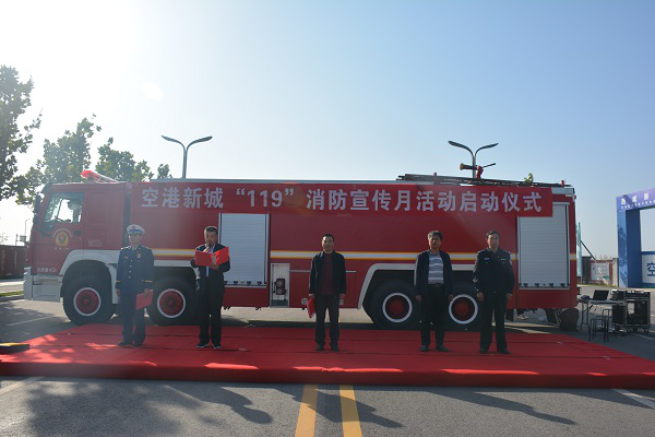 为充分展现消防救援队伍改革转制后新队伍、新形象、新作为,推动全社会关注消防、学习消防、参与消防,进一步提升全民消防安全素质和社会抵御灾害的能力,11月6日下午,空港新城举办了2020年度“119”消防宣传月启动仪式。空港新城管委会副巡视员倪忠明、应急管理局、公安分局、北杜街办、消防救援大队相关负责人出席活动。空港消委会成员单位、重点单位等单位员工代表参加了启动仪式。仪式由应急管理局局长刘永强主持,空港党委宣传部全程拍摄报道。
