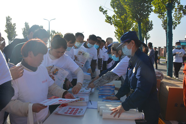 启动仪式后,与会人员参观了消防车辆器材装备,观看了涡喷消防车实操演练。大队宣传人员及志愿者一同发放了宣传资料,并免费赠送了消防安全宣传手提袋、围裙等礼品,进一步传播了消防安全理念,普及了消防安全常识。