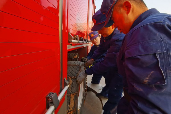 一是落实车辆防寒准备工作。队站利用“车场日”时间安排部署开展执勤车辆维护保养检查工作,对机油、轮胎、蓄电池等开展检查,同时组织人员对所有车辆防冻液进行补充更换。检查结束后,队站组织各车驾驶员与号员对安装防滑链进行操作学习。