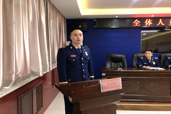 随后,大队长张念对大队下一步的工作提出以下要求:一是要迅速进入角色,理清思路,切实投入到即将开展的工作中去;二是要继续加强队伍正规化管理,确保严格落实队伍各项管理措施,使队伍有新气象,新面貌;三是要强化思想认识,不断加强自身党性修养,始终把纪律和规矩挺在前面,自觉维护好消防救援队伍的良好形象。