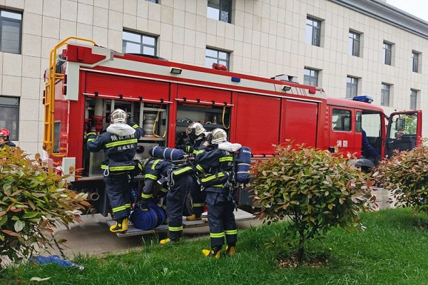 演练假设空港新城自贸大道以西致平大街葆盛控股有限公司仓储6区发生火灾,火势蔓延迅速,过火面积约500平方米,有大量浓烟。大队接到警情后,先后调派广德路小型站、永和路小型站与景平大街消防救援站8车29人前往处置。根据现场情况,张念大队长立即下达行动指令,各小组按照指令内容依次展开行动。演练环节火场警戒、火情侦察、内攻搜救、火场供水、破拆排烟、紧急救助等实战科目。