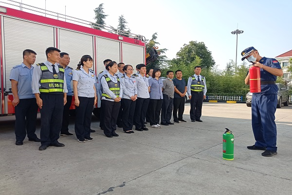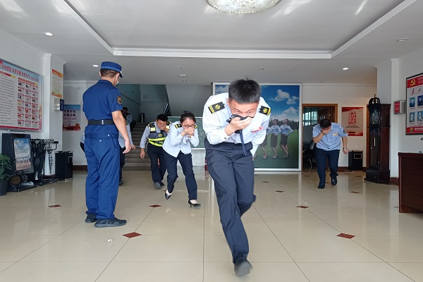 培训过程中,站长熊冰涛首先向机场西收费站工作人员介绍了灭火器种类及使用范围,并对灭火器正确使用方法进行演示。随后,执勤点指战员同培训人员共同开展灭火疏散演练。演练假设机场西收费站办公区域因设备老化发生火情,执勤点安保人员迅速组织人员进行疏散,并同工作人员进行模拟灭火处置,确保一旦发生火灾,能够快速反应。