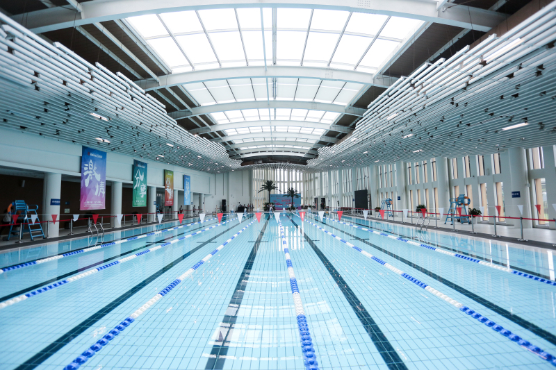 空港新城运动中心设有羽毛球、网球、乒乓球、篮球场、瑜伽馆、游泳馆、健身房等,集游泳、健身、操课、休闲为一体,拥有顶级的国标泳池,采用达到全优水质硅藻土过滤系统,使用世界顶级健身器材“力健Life Fitness” “FREEMOTION”等品牌,进口器材,顶尖设计,打造集现代简约与时尚艺术为一体的高端、绿色、生态的新型游泳健身馆。为您提供高品质、全方位、一站式的运动生活新体验。运动中心健身器材主要分为有氧运动器材、自由器械、固定器械,目前有跑步机8台,动感单车12台,其他器械40余个,共可容纳550人同时运动健身,引领健康快乐生活,打造运动时尚高地。