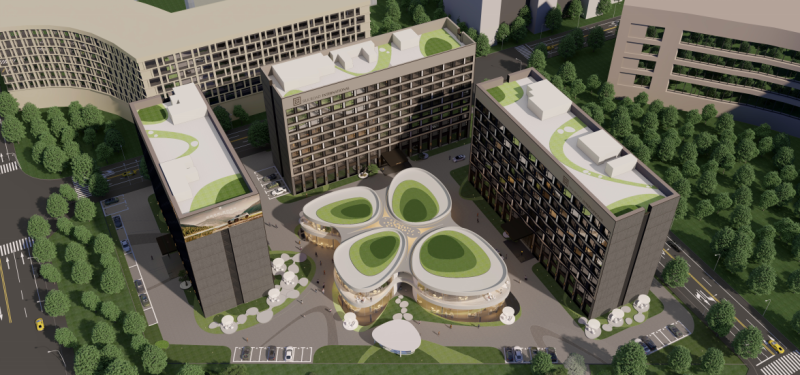 项目总建筑面积约61391.98平米,共建设四栋单体,酒店建筑面积9871.72平米,商业办公建筑面积28795.21平米,已引入福朋喜来登酒店、拟招引航空服务、临空总部企业及配套商业。