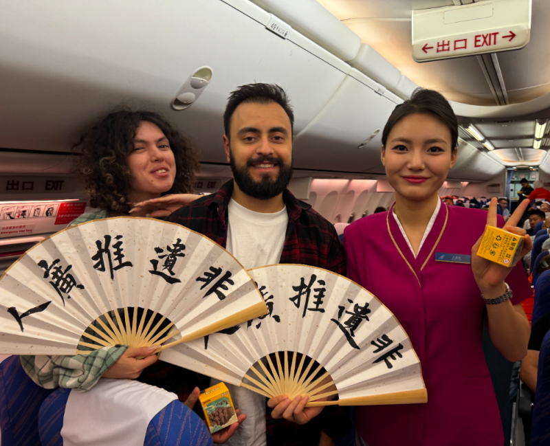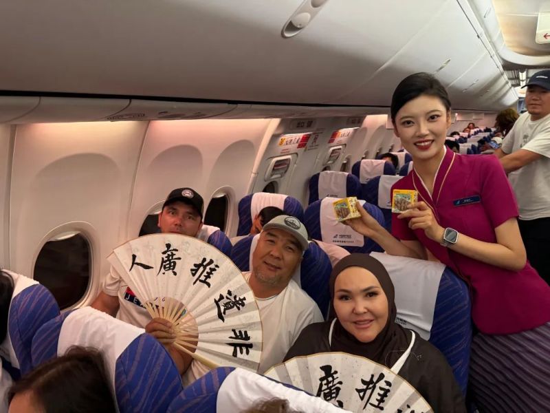 6月13日7时42分,从阿拉木图起飞的CZ8062次航班落地西安咸阳国际机场,作为2025年“文化和自然遗产日”非遗宣传展示活动——“跟着非遗游西安暨空中丝路文化旅游主题航班”活动开幕后的首架文化主题航班,乘务员们将极具西安特色的非遗盲盒带上飞机客舱,在弘扬中国传统文化的同时促进多元文化交流。