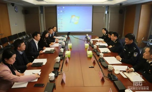 3月21日,空港新城党委书记、管委会主任贺键会见西安咸阳机场海关关长李晋生一行,双方就推动形成空港口岸对外开放新格局进行了深入沟通。空港新城党委委员、管委会副主任艾晨,空港集团副总经理邵建辉参加会见。