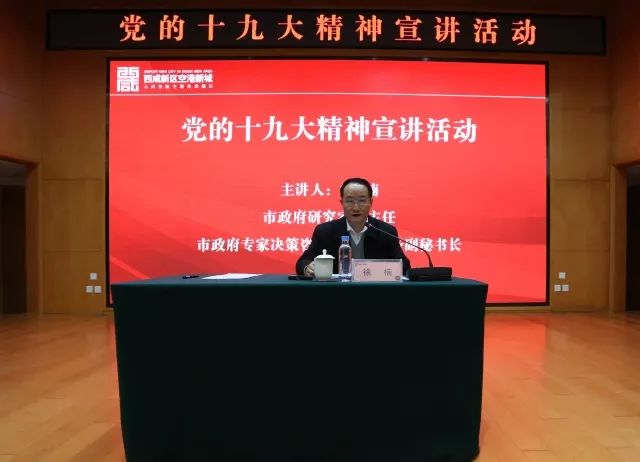 11月22日,西安市委党的十九大精神宣讲团走进空港新城。市政府研究室副主任、市政府专家决策咨询委员会常务副秘书长徐楠作十九大精神宣讲报告。空港新城党委书记、管委会主任贺键主持报告会,空港新城党委、管委会、集团公司领导参加。