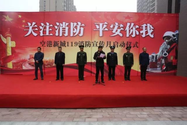 为深入开展“119”消防宣传月活动,进一步增强辖区居民消防安全意识,有效遏制各类火灾事故的发生,11月9日上午,空港新城举办2017年“119消防宣传月”启动仪式,空港新城党委副书记、管委会副主任陈默,西咸新区公安消防支队后勤处处长王靖出席启动仪式。