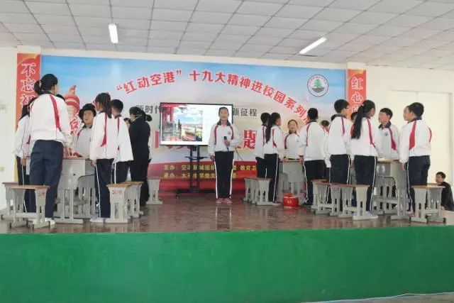 11月7日,空港新城“红动空港”十九大精神进校园系列活动走进太平中学,举行以“空港学子红心向党”为主题的班会教育活动,把宣传和贯彻十九大精神延伸到基层学校每一位师生心中。党委、管委会办公室,党委组织部,教育卫体局,太平镇政府相关负责人及太平中学全校700余名师生共同参加活动。