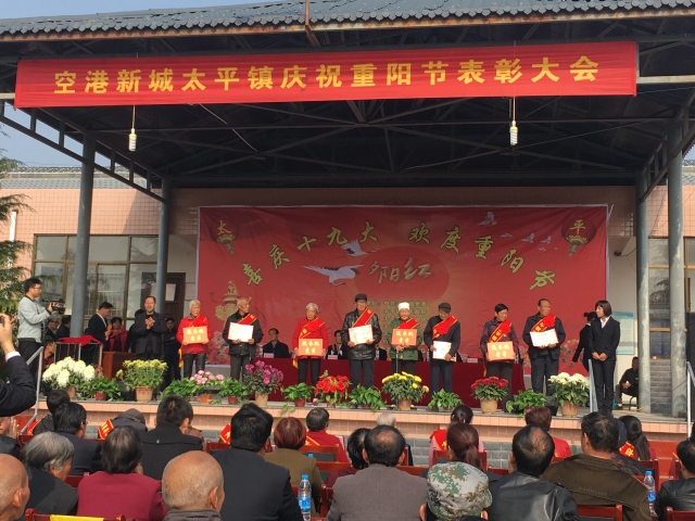 同日,太平镇还举办了“喜迎十九大 欢度重阳节”表彰大会暨文化惠民演出活动。本次大会共表彰了“最美乡村好人”、 “金婚之星”、“好公婆”、“好媳妇”、“好孝子”五大类共计30名先进个人,参会群众共计500余人。