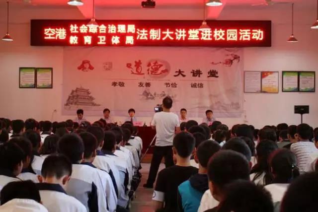 新学期伊始,为加强辖区中小学生的法制教育,提高青少年的法律素质,将预防青少年犯罪从小抓起,结合正在开展的校园周边安全整治活动。空港新城社会综合治理局协同教育卫体局,特邀请西安市中级人民法院未成年综合审判庭庭长唐洁老师及高级法官路小红老师一行6人,前往辖区所有中小学开展了为期3天的法律大讲堂进校园活动。