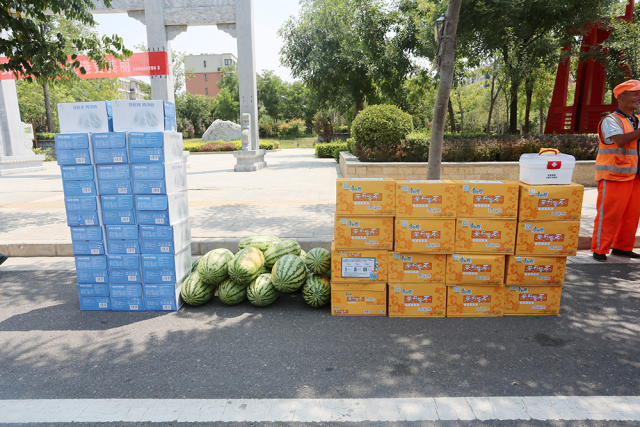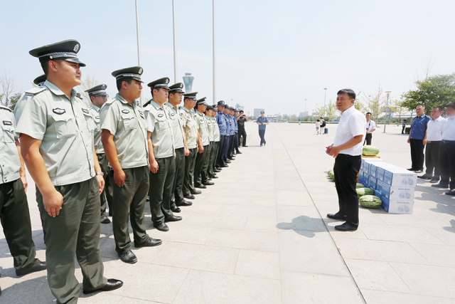 7月26日上午,空港新城管委会副主任陈默看望慰问高温天气下坚守岗位的一线工作人员,代表空港新城党委、管委会对他们的辛勤劳动表示感谢,并送上饮料、西瓜、防暑药品等消暑慰问品。