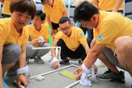 活动伊始,大家在教官的指导下分成了苹果、霹雳、勇士、火箭四支队伍。在呼吸的力量、汉诺塔、我们是最棒的等游戏环节,大家相互交流、沟通、协作,默契度大大提升。最后的纳斯卡巨画环节,第四分队的图案是最多的一组,但是大家团结协作,分成指挥组、调色组、画线组、绘制组、保护组等专业小组,一切都变的井然有序,很快就完成了绘画任务。