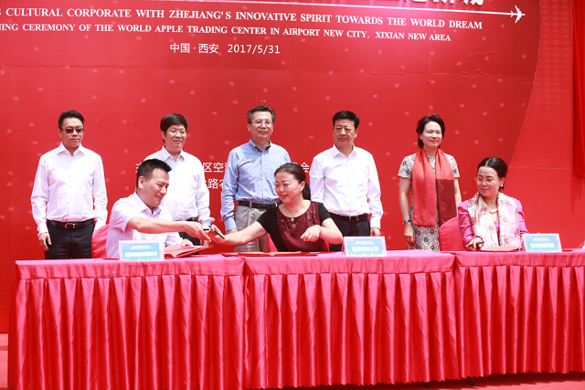 翌日,新光控股集团公司、陕西苹果投资管理有限公司、空港创投公司三方正式签约,世界苹果中心项目落户西咸新区空港新城,一个交易规模可达千亿级的产业平台呼之欲出。鲜为人知的是,“小苹果”背后有“大文章”,更有“好故事”,这个故事,是精准招商的故事,也是合作共赢的故事,更是空港新城蜕变升级的故事。