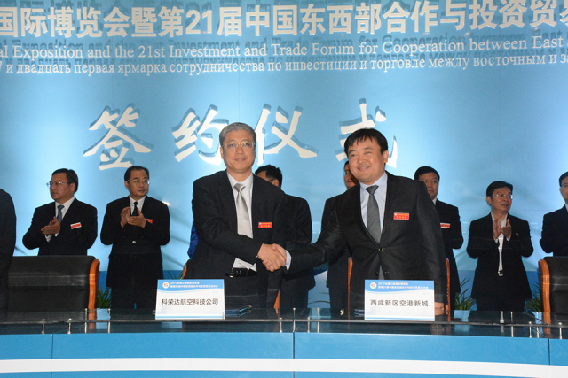 6月4日下午, 2017丝博会暨第 21届西洽会省上集中签约仪式举行,空港新城签约长安航旅战略合作项目、科荣达APU深度维修项目2个航空服务类产业项目,合同金额48.7亿元。空港新城管委会副主任陈默代表空港新城签约。