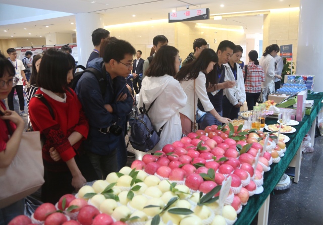 在随后的苹果产品和太平红杏品鉴会上,采访团品尝了世界苹果中心准备的来自洛川、新疆等不同产地的苹果品种,以及果醋、果汁等深加工产品。空港浓香园饮用水简单、时尚的外观设计得到了采访团的一致赞扬。在活动现场,空港新城太平镇镇长助理、太平镇电商办负责人何兵兵向记者介绍了太平红杏有关情况。