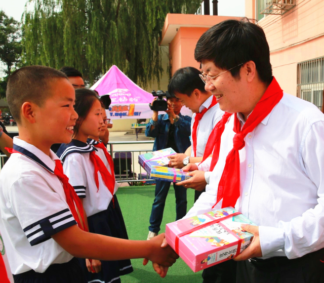 来到操场上,孩子们正在进行迎“六一”文艺演出,精彩的表演吸引了大家的目光,岳华峰等领导为孩子们送去书籍、画册等节日礼物,祝愿他们节日快乐,鼓励大家好好学习、勤于动脑、敢于动手,培养兴趣爱好,实现全面发展。