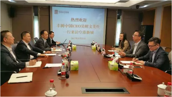 3月27日上午,丰树中国CEO吴财文一行来访空港新城,空港新城管委会副主任王冬会见,双方考察了丰树项目现场并召开专题推进会。