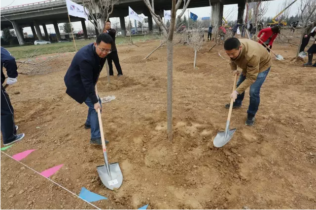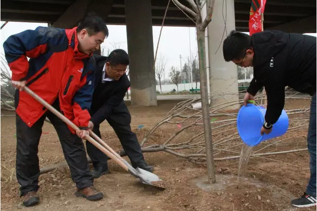 此次植树活动依据近期新城绿化工作部署,集中对自贸大道南端东侧附近空地进行植树绿化。活动共分九组,上午10点,参加植树的各领导和员工准时到达植树地点,参加活动人员首先认真学习了“乔木种植工法标准”,随后各组人员纷纷挥锹铲土、放苗回填、浇水植树,共栽植樱花树苗300余棵,圆满完成了空地绿化任务。