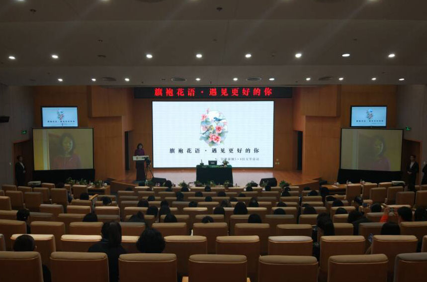 活动中,艾晨为女性同胞送上节日祝福,与大家分享了作家毕淑敏的文章《我喜欢的女人》,希望大家能够快乐工作、幸福生活,体现价值、发掘潜力,让女性之美成为国际化空港新城的一道靓丽风景。活动邀请专业的插花老师为大家带来插花艺术课程,辅导大家用玫瑰、桔梗等花朵点缀出一片春意盎然。同时,专业的旗袍老师也为大家讲解了旗袍的发展历史、制作工艺、挑选和保养,部分女性干部员工还穿上旗袍走上舞台,充分展示了空港女性的魅力。