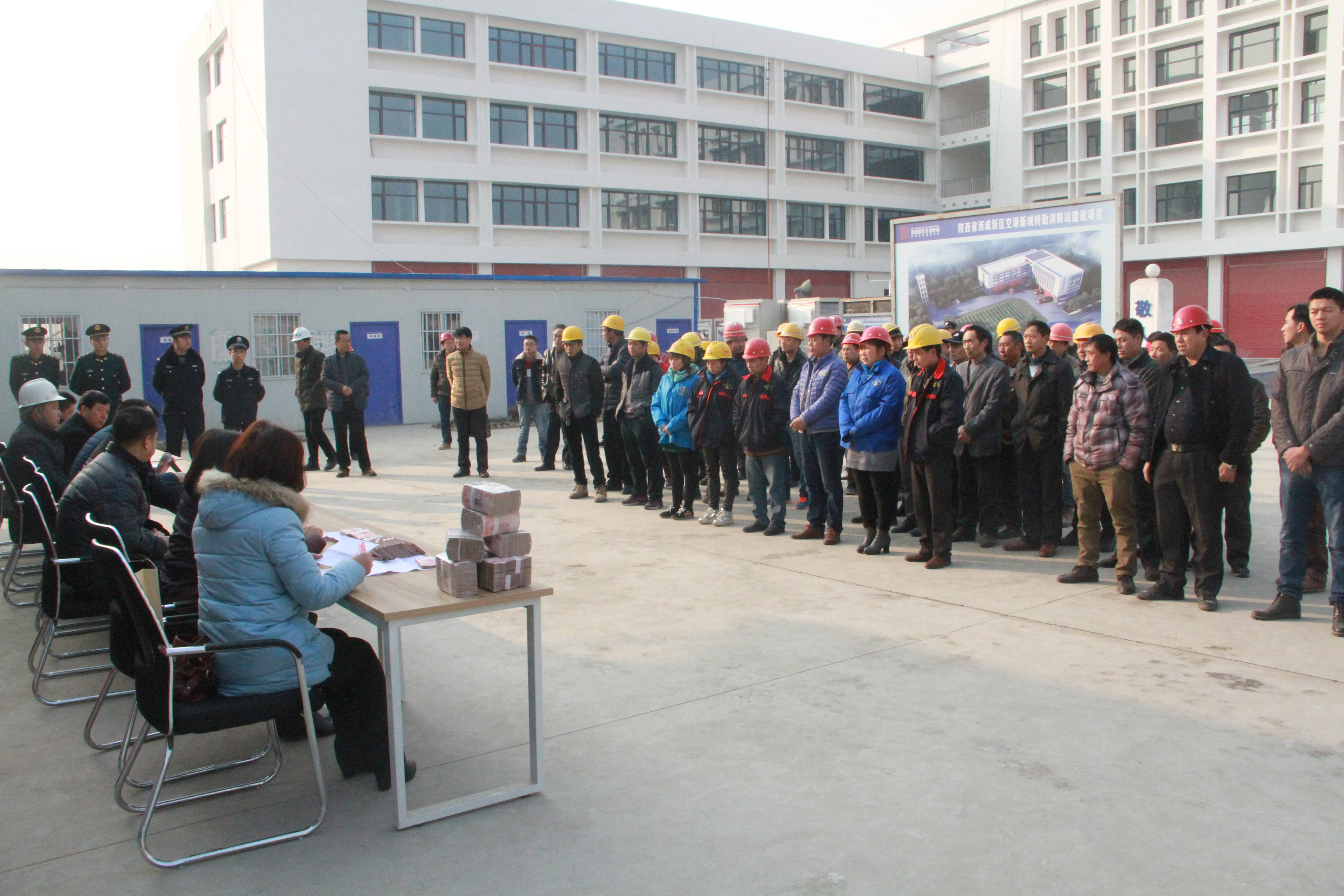 12月30日上午,空港新城农民工工资现场发放仪式在消防站项目现场举行。现场为120名农民工结余工资90余万元,对工程施工过程中表现突出的优秀农民工进行表彰奖励。