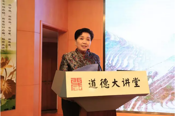 受邀前来授课的全国播音主持委员会副会长海茵老师以“爱岗敬业”为主题,通过观看短片《王进喜—拼命拿下大油田》、进行道德思考、行崇德礼、唱《公民道德歌》、解读道德经典、做道德承诺等方式,声情并茂地为在场听众解读了中华民族传统的文化,让大家对传统美德和爱岗敬业有了新的认识。