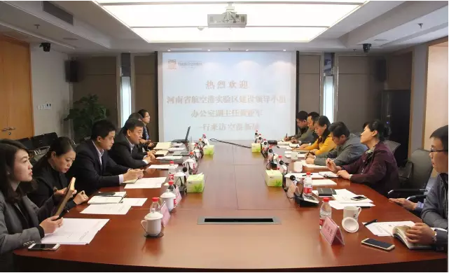 10月19日上午,河南省航空港实验区建设领导小组办公室副主任黄亚军、郑州航空港实验区管委会副主任蔡红一行来空港新城考察,空港新城管委会常务副主任陈默会见。