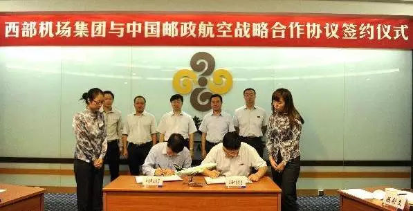 2016年9月22日,中国邮政航空公司与西部机场集团公司签署战略合作协议,双方将在完善邮政速递基础设施、航班保障、航线布局、扩大集散等四大方面开展深入合作,共同推进“丝绸之路经济带新起点”和西北地区核心机场枢纽建设,为促进邮政速递行业和地方经济发展贡献力量。西部机场集团公司卢程祥总经理及相关部门领导、邮航杨建国总经理及相关部门领导、陕西省邮政速递物流公司领导参加签约仪式。